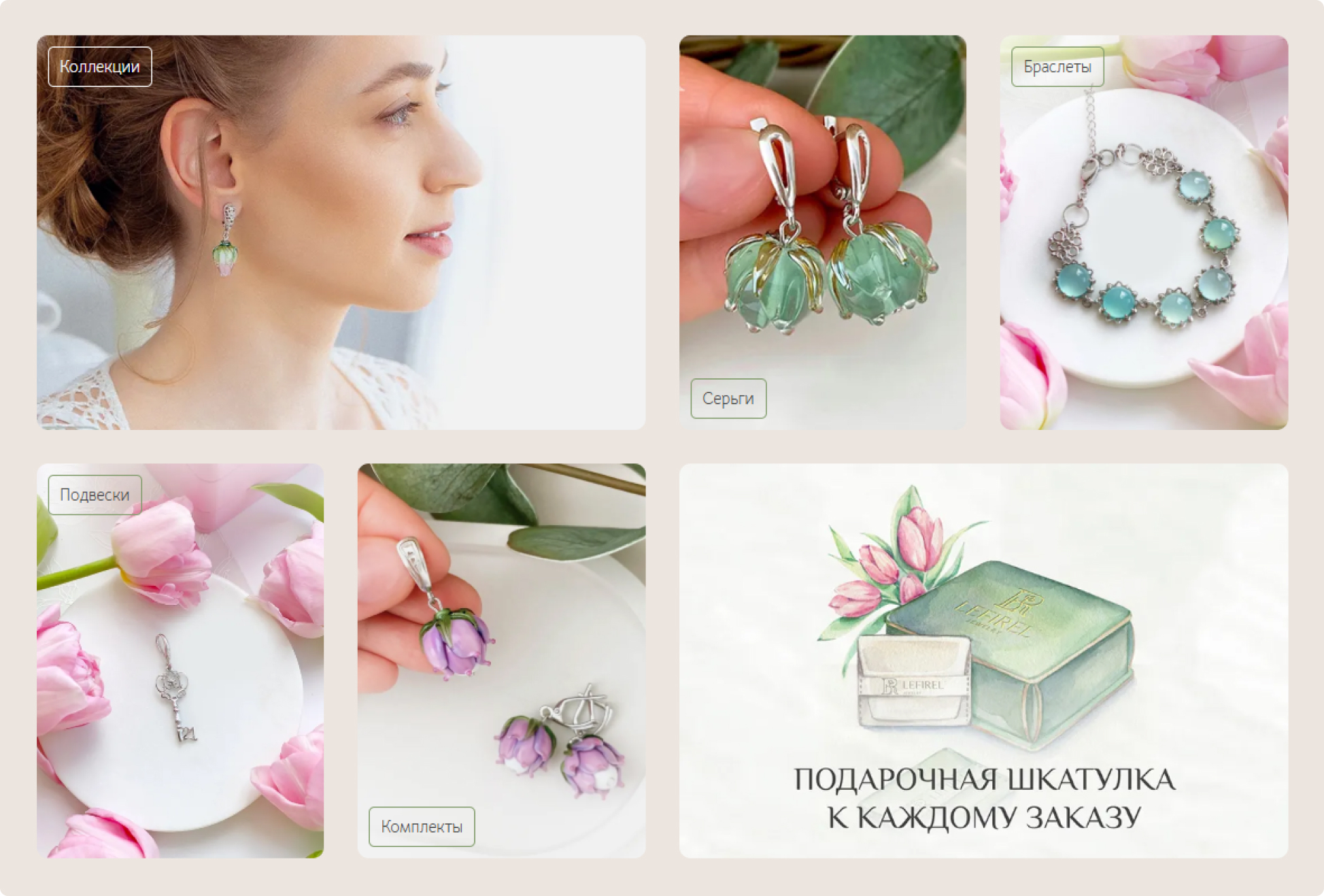 Все данные, собранные на этапе анализа рынка и конкурентов, легли в основу нового позиционирования Lefirel. Мы увидели, что в среде украшений ценится уникальность, но подачу продукта конкуренты строят стандартно: акцент на материале, ассортименте, скидках и бонусах. В таких условиях Lefirel выигрывает за счет эмоциональной составляющей и авторской истории.