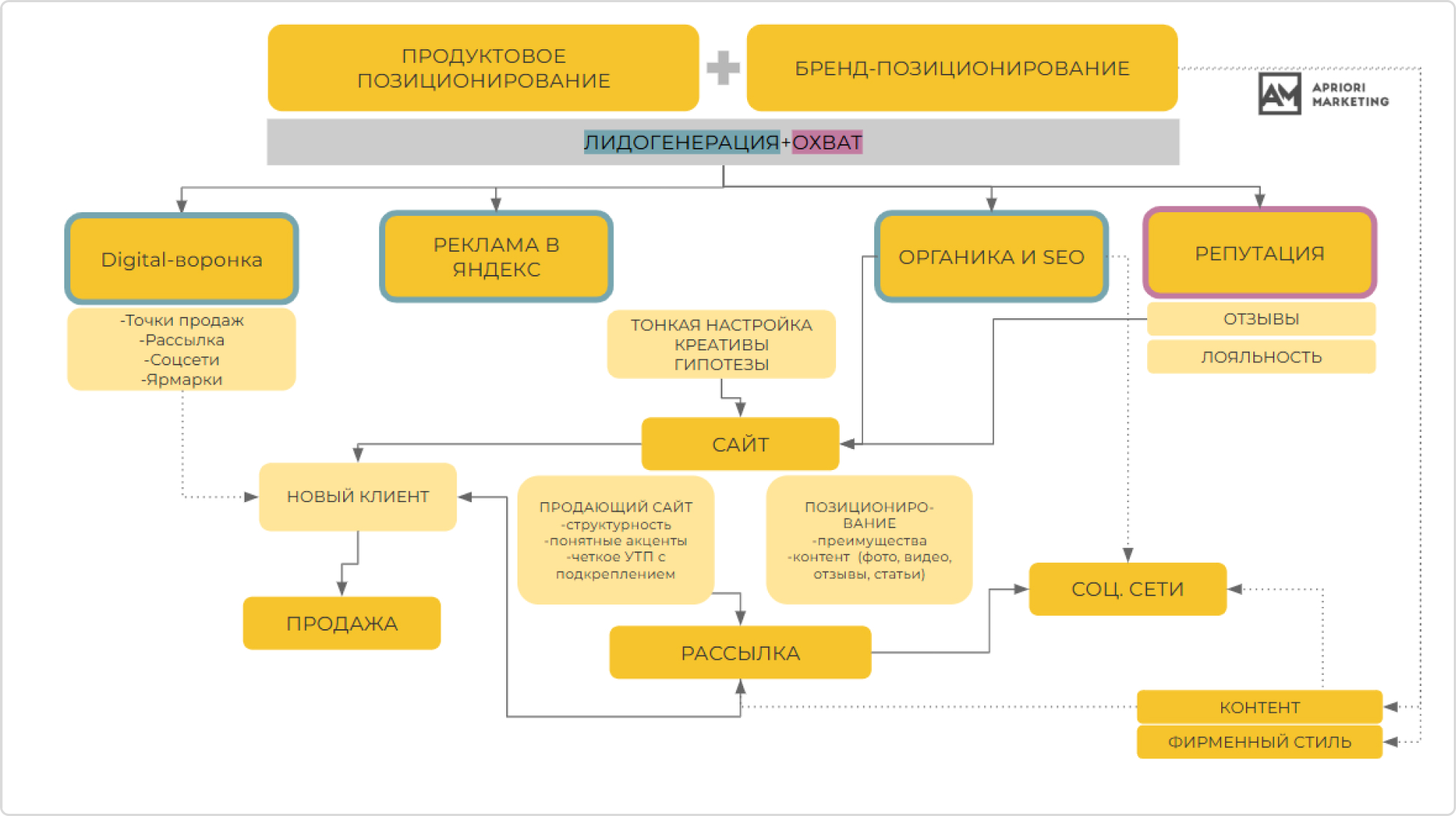 Главная задача была понятна: создать системный маркетинг, который охватывает всё — от первого контакта до повторной покупки. Нужно было: